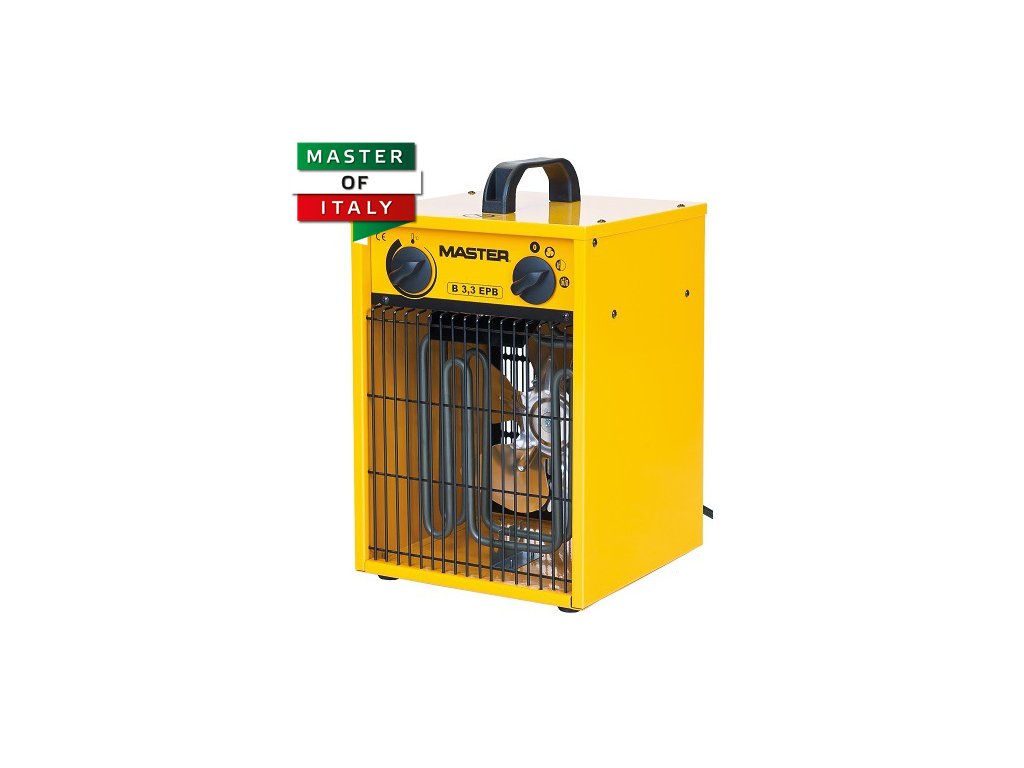 Master B3,3 EPB o výkonu 3,3 kW je nejsilnější elektrický ohřívač s připojením na běžnou zásuvku 230 V. Konstrukce topidla má díky robustnosti velmi dlouhou životnost. Topné prvky ohřívače jsou z nerezové oceli, motor je vybaven tepelnou ochranou a termostatem proti přehřátí. Je určen pro vytápění malých i středně velkých místností. Výhodou provozu elektrického topidla je ohřev bez kouře a zápachu, topidlo nespotřebovává kyslík a ventilátor má minimální hlučnost.